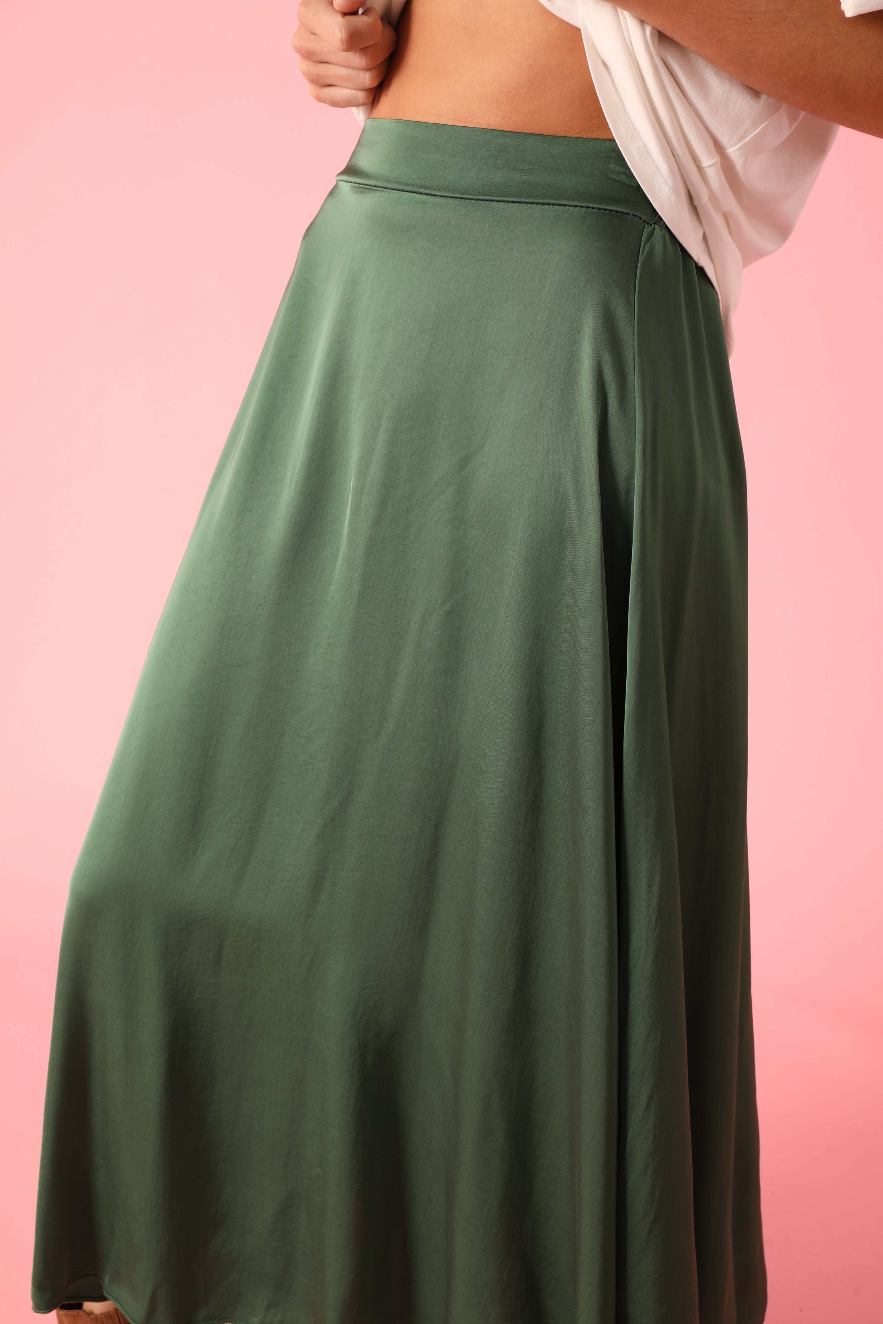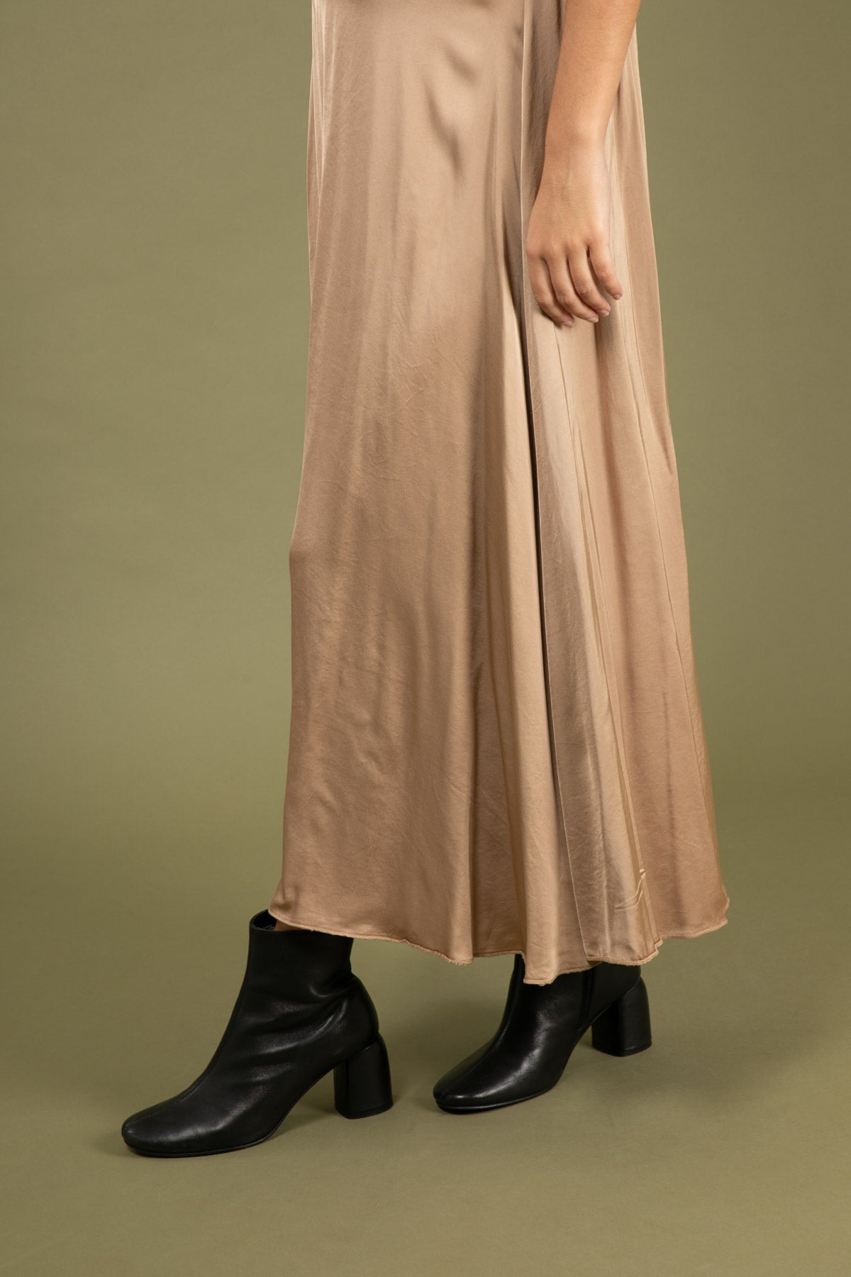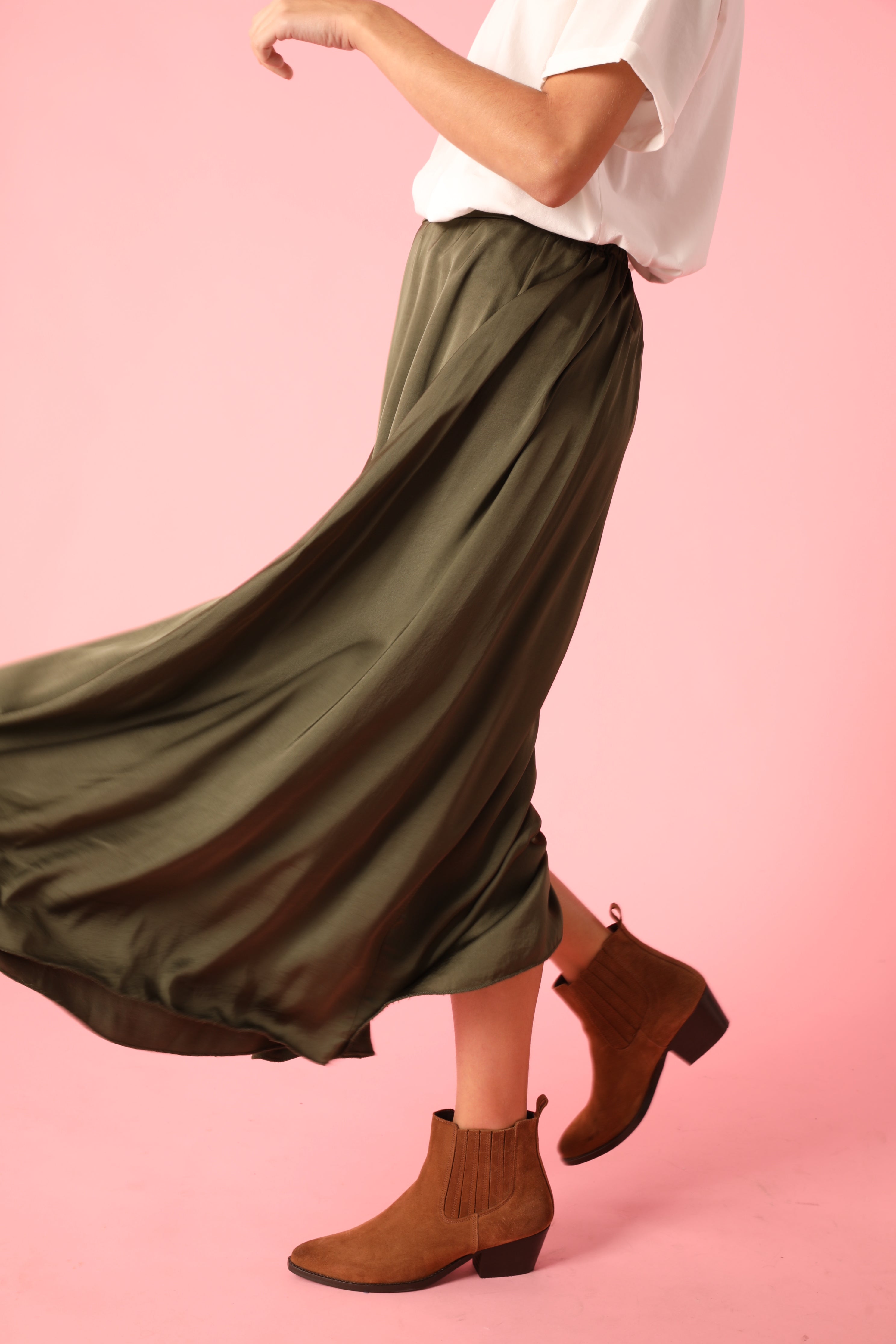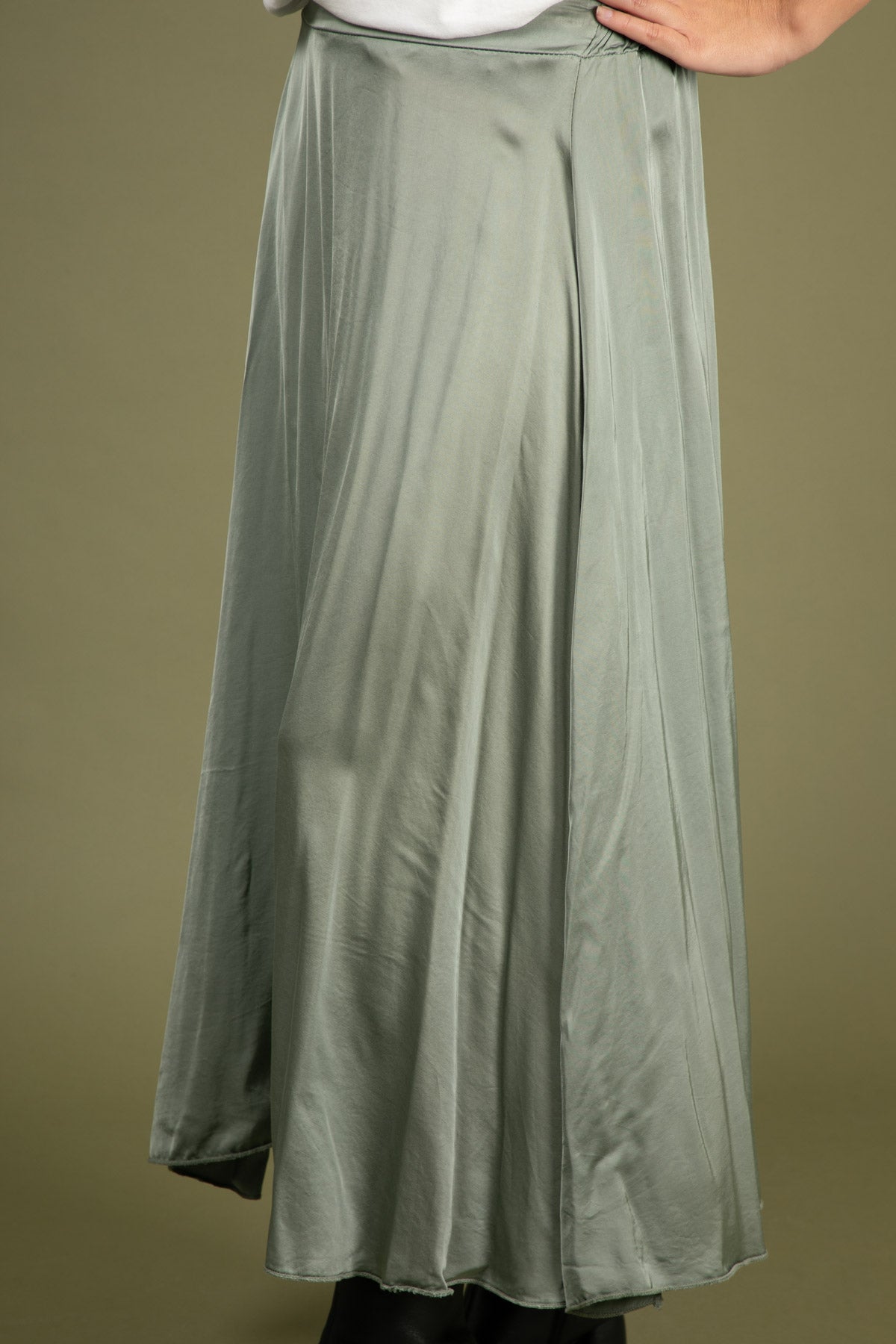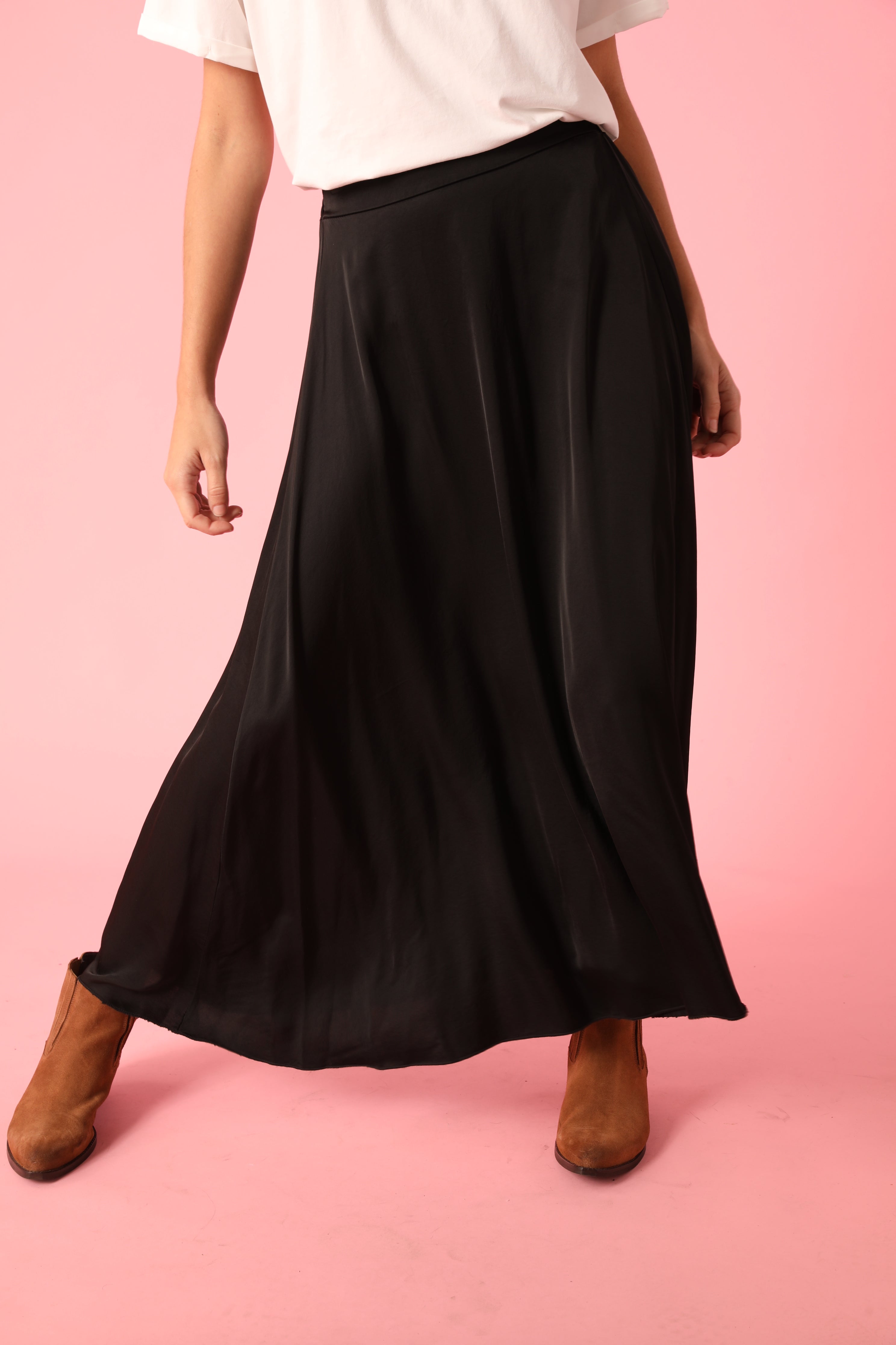 Jupe fluide en soie satinée, taille élastique dans le dos.