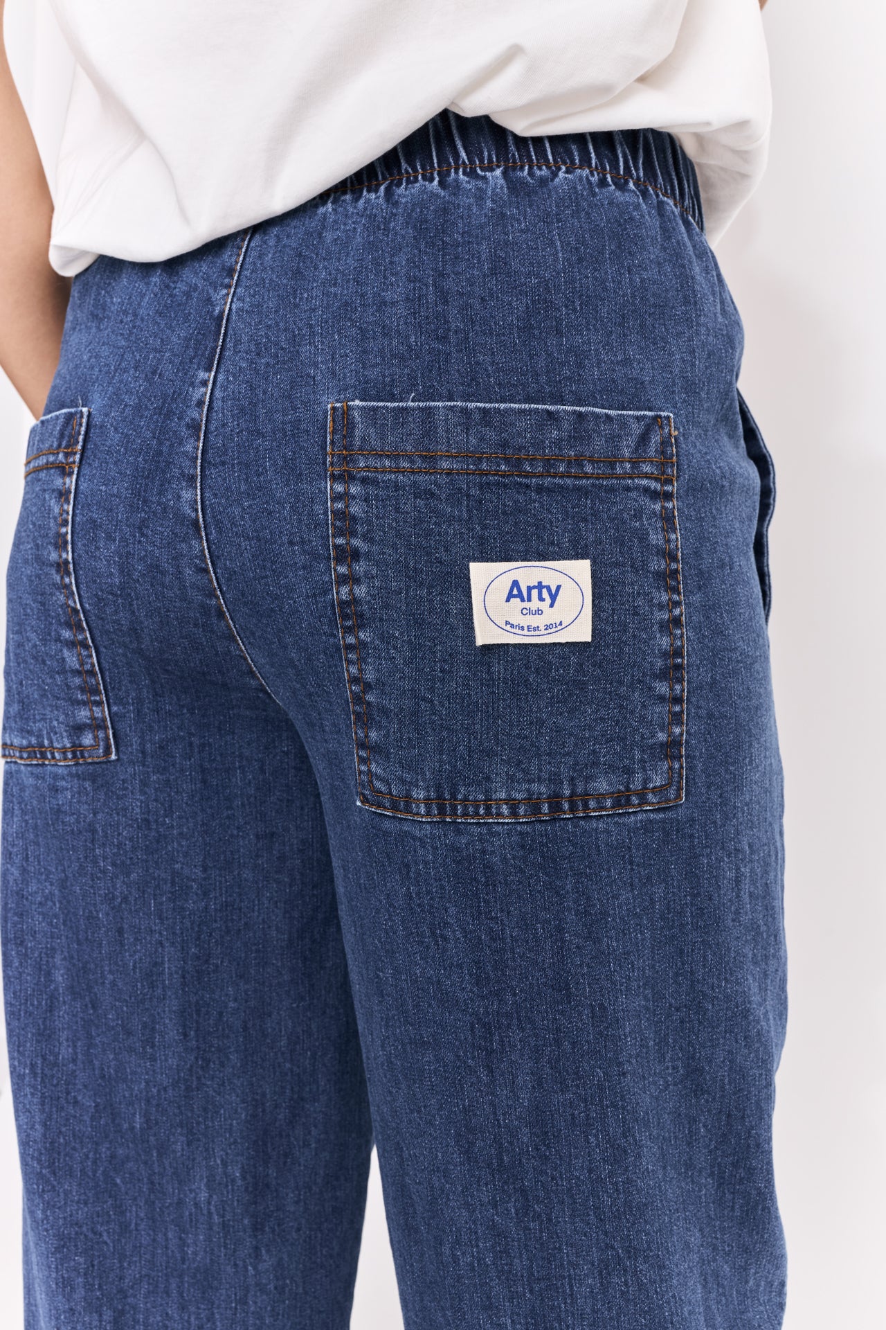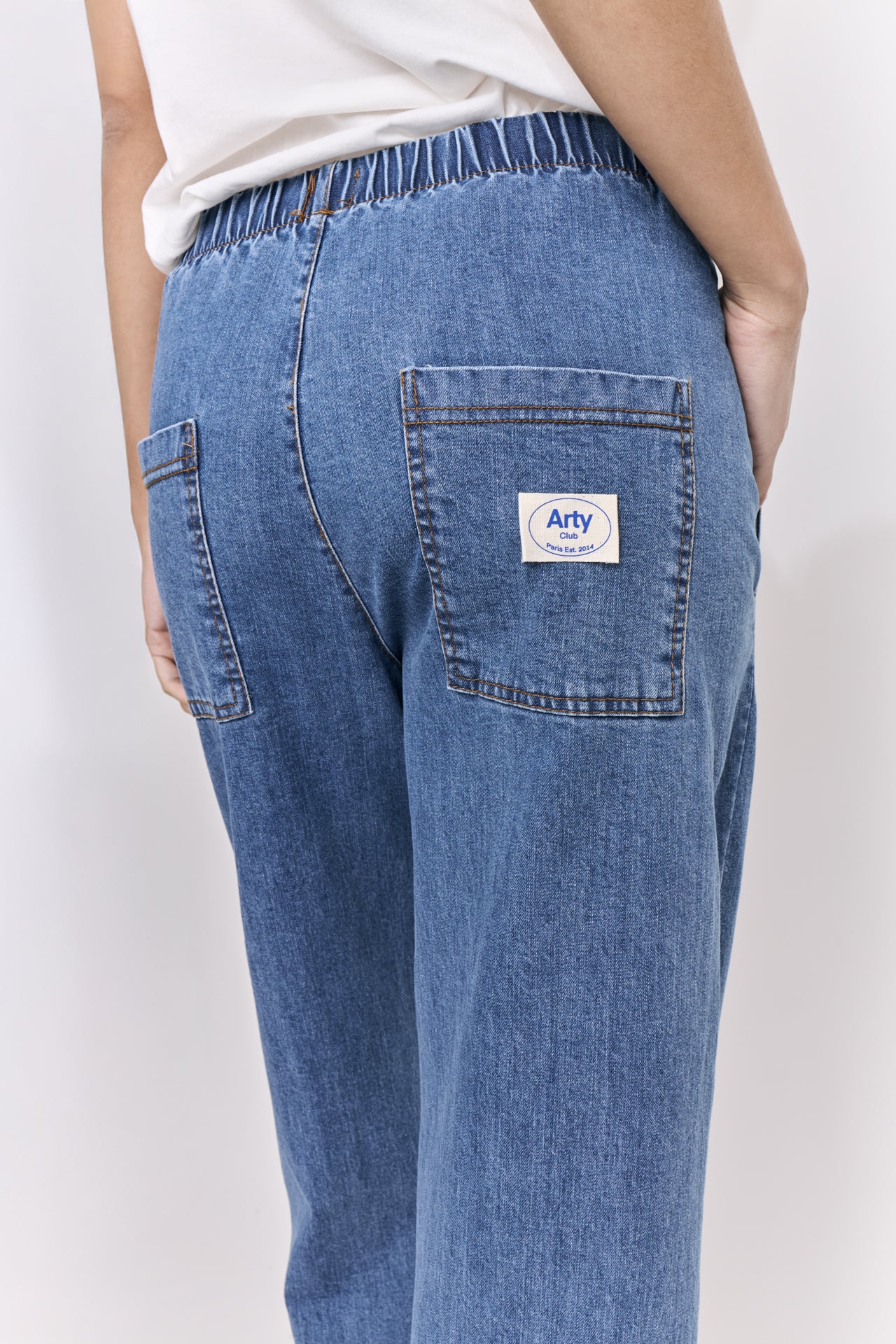 Pantalon en denim logo Arty Club, taille élastiquée.