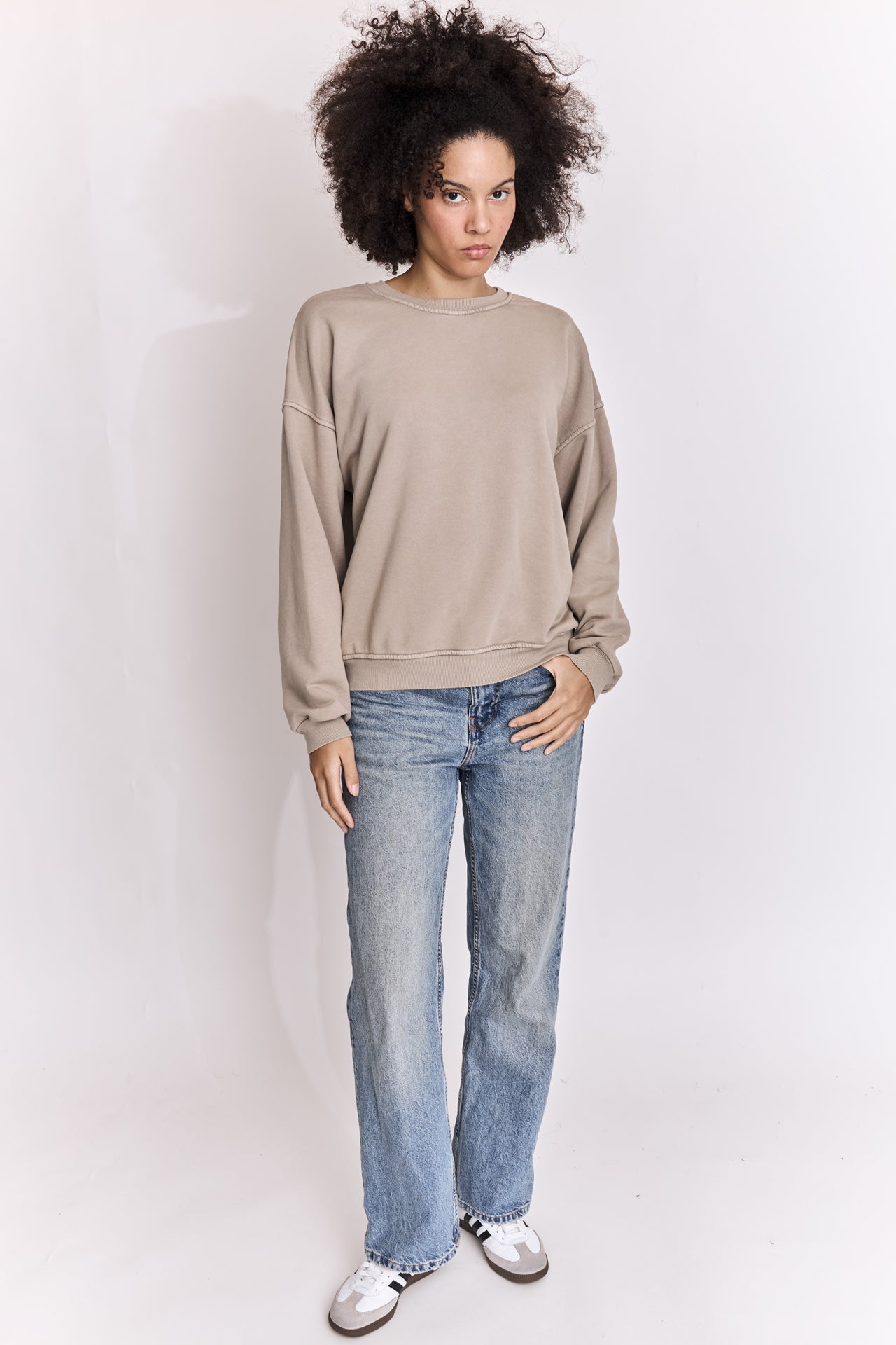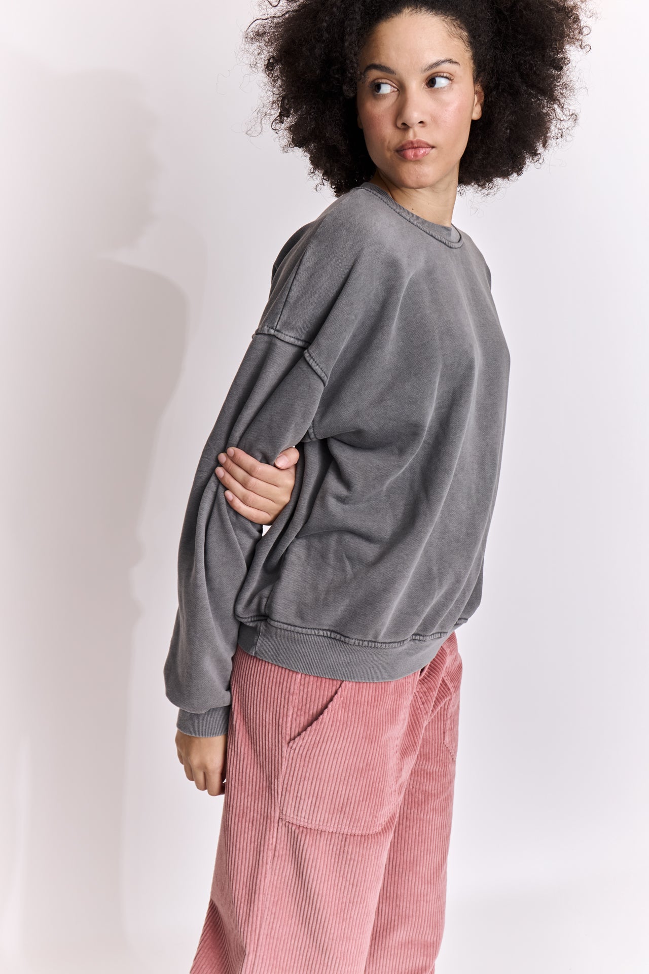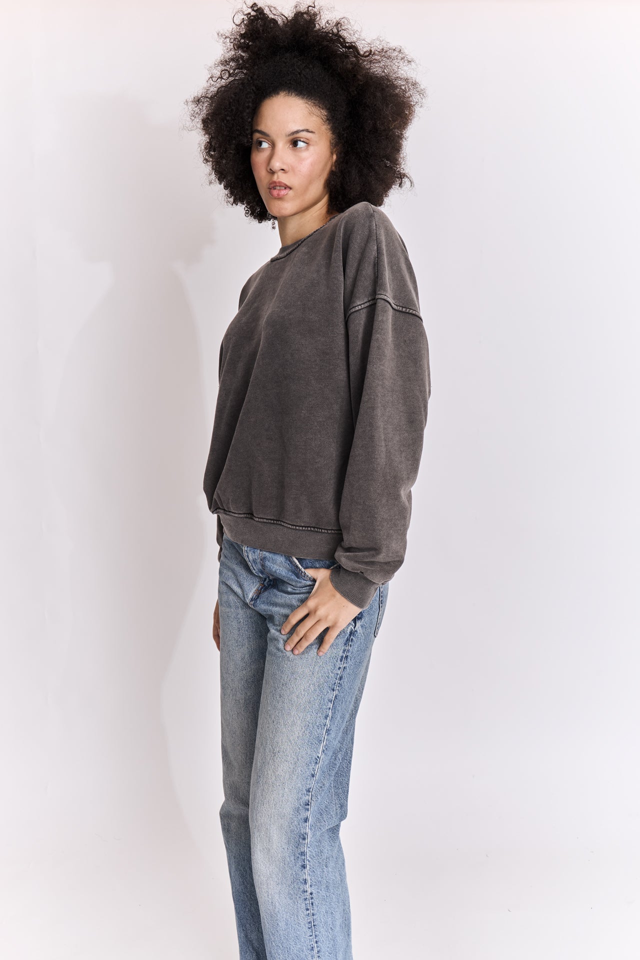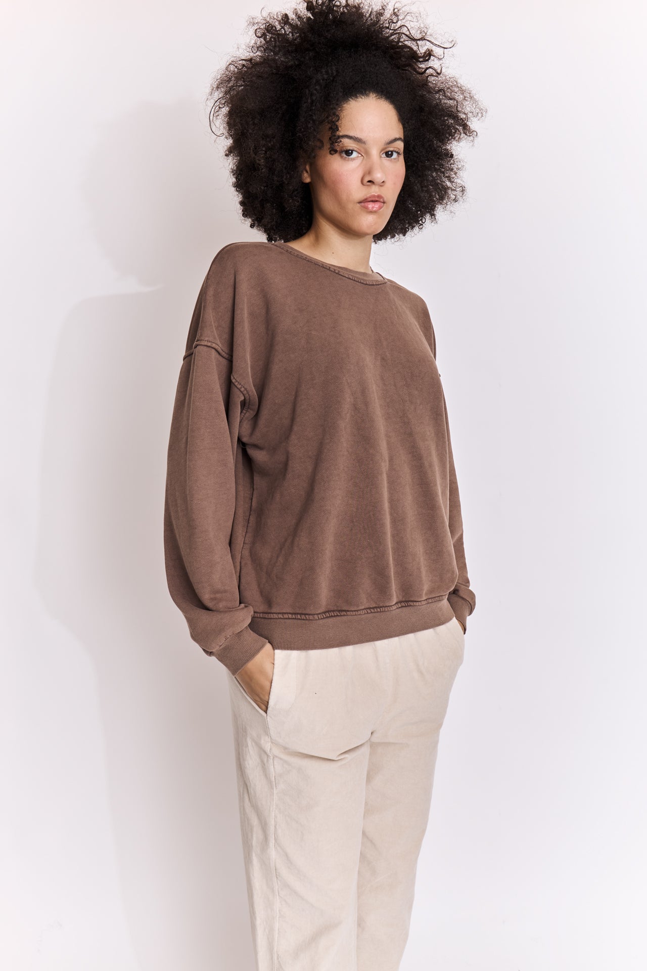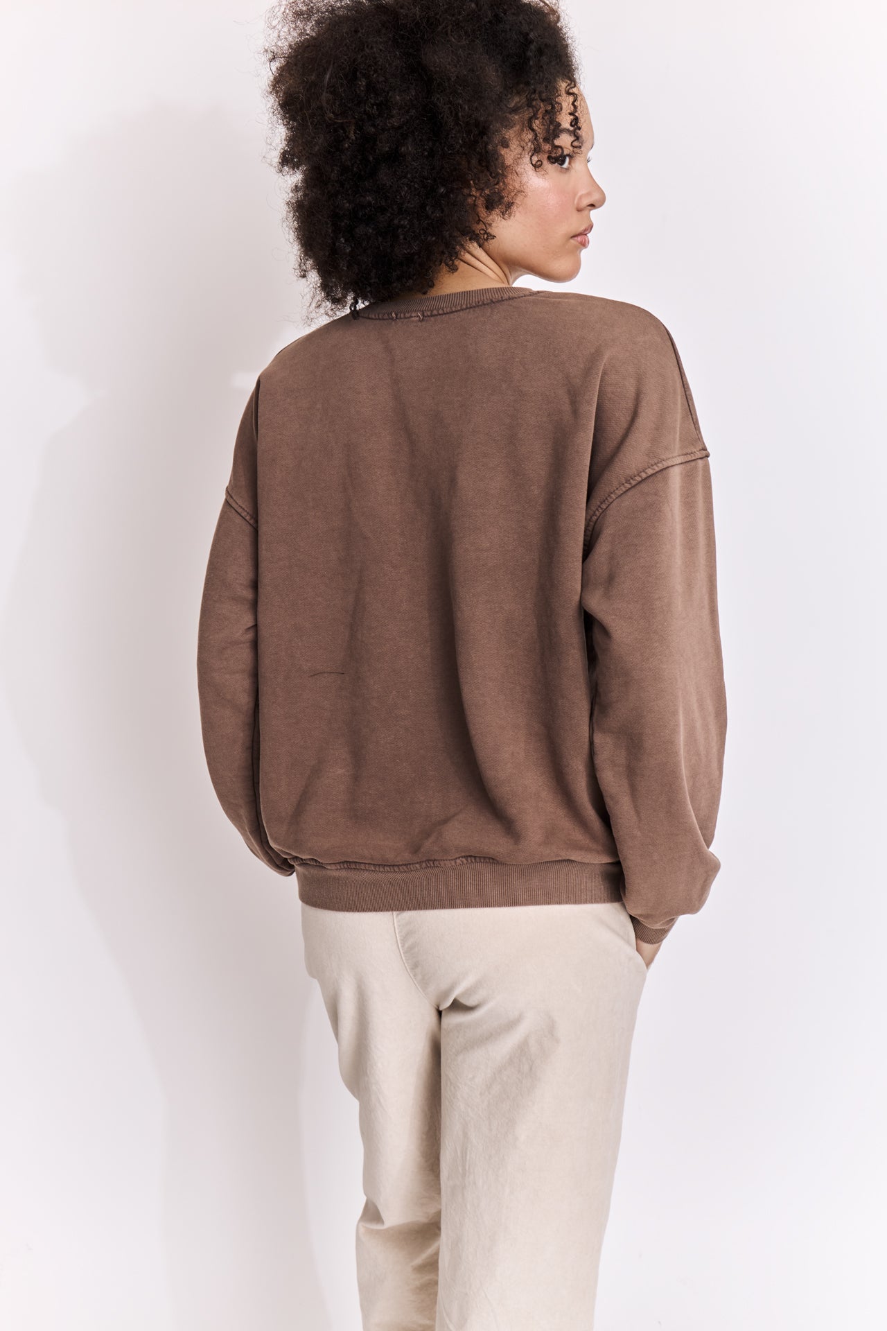 Sweatshirt uni en coton délavé.